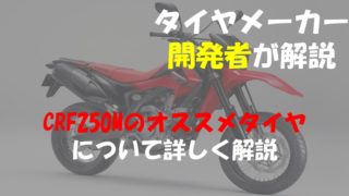 タイヤに悩む人CRF250Mのタイヤはどうやって選べばいいの・・・自分のバイクのタイヤサイズも見てみないと・・・この記事ではこのような疑問を解決します。筆者はタイヤ開発に携わっている技術者で知識はありますので、参考になれば幸いです。タイヤは...